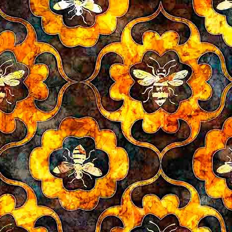QT Fabrics All The Buzz Bee Medallions - Orange
