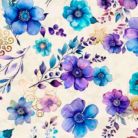 QT Fabrics Fantasia Floral Toss - Cream